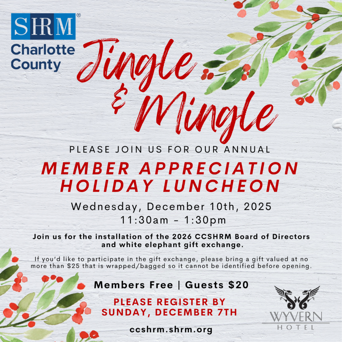 Register online by Sun., Dec. 7th: Register ~ Monthly Meeting | Charlotte County SHRM
